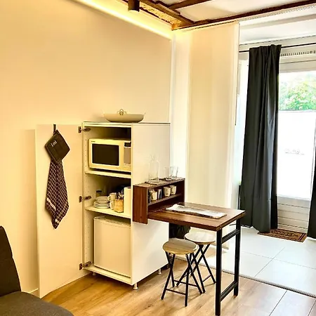 The rooms have shared bathrooms with a bathtub, a walk-in shower, and a separate toilet. Certain units feature views of the street. Also, you will find coffee and tea making machines, a fridge, and kitchenware provided.